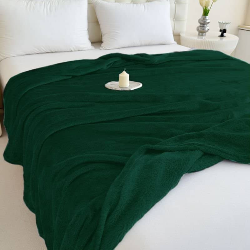 Koc pluszowy 200x220 cm butelkowa zieleń – miękki, elegancki i przyjemny w dotyku