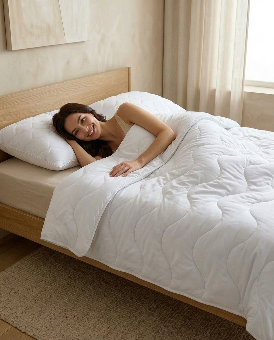 Poczuj dobroczynny dotyk spokojnego snu, który otuli Cię delikatnością i ciepłem przez wszystkie pory roku. Zaprojektowana z myślą o jeszcze większej wygodzie i przestrzeni — idealna, by dać Ci oddech i ukojenie.