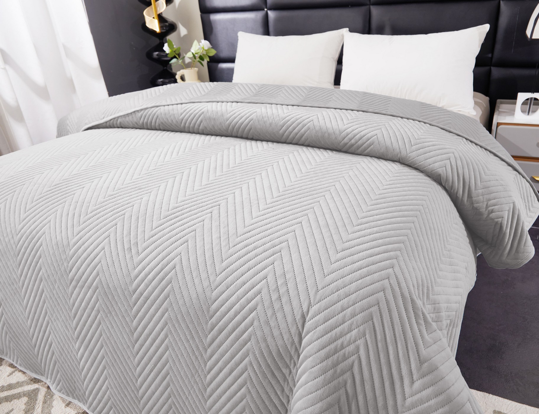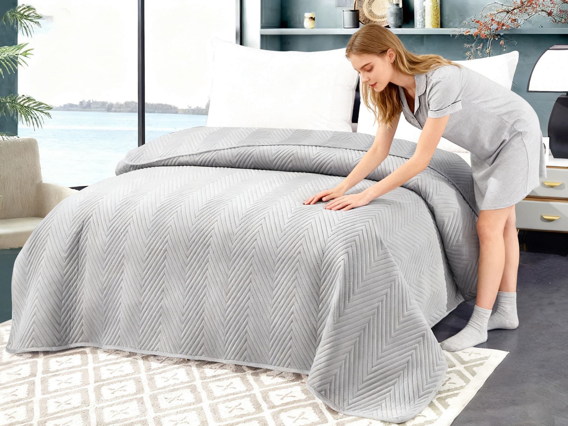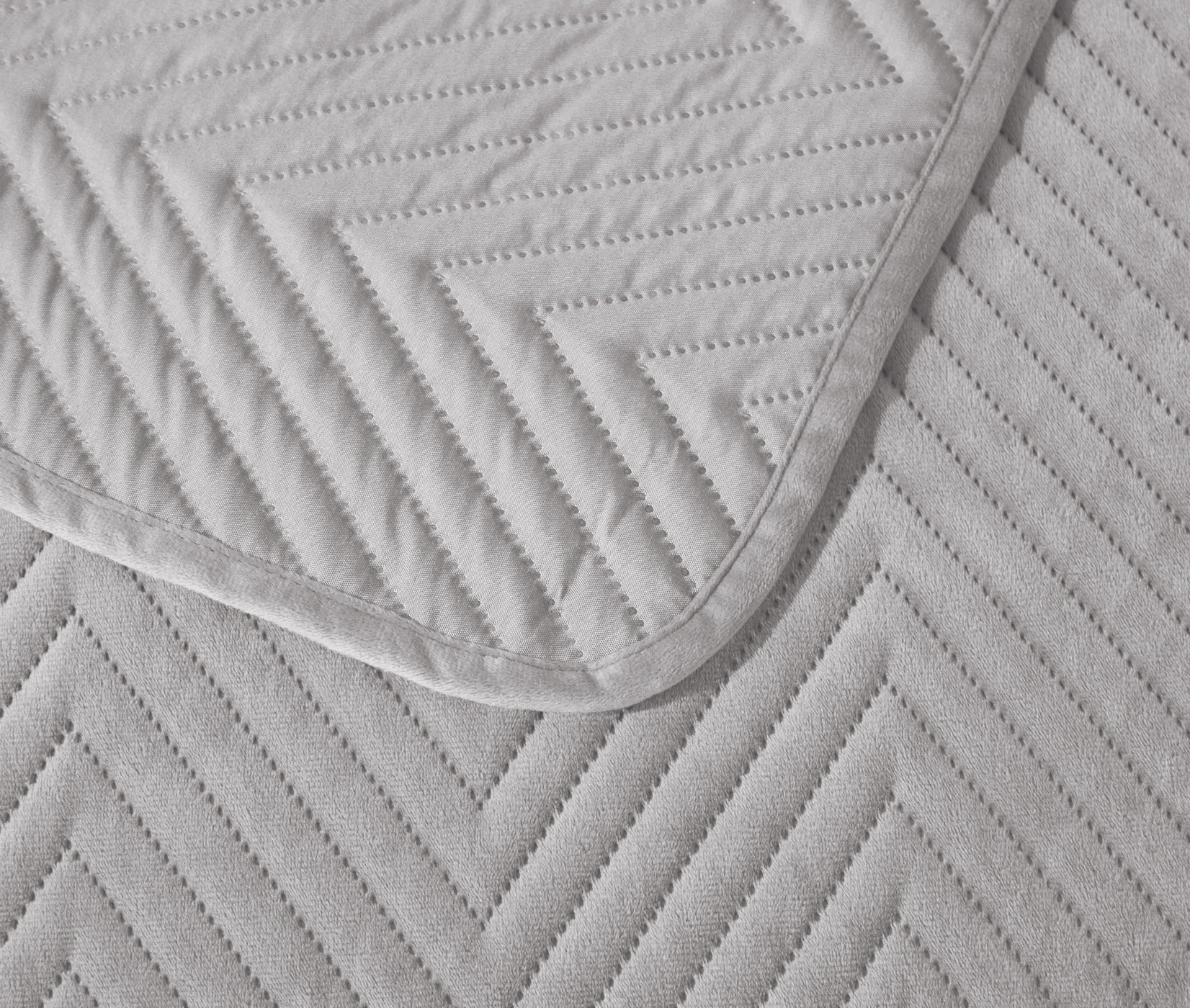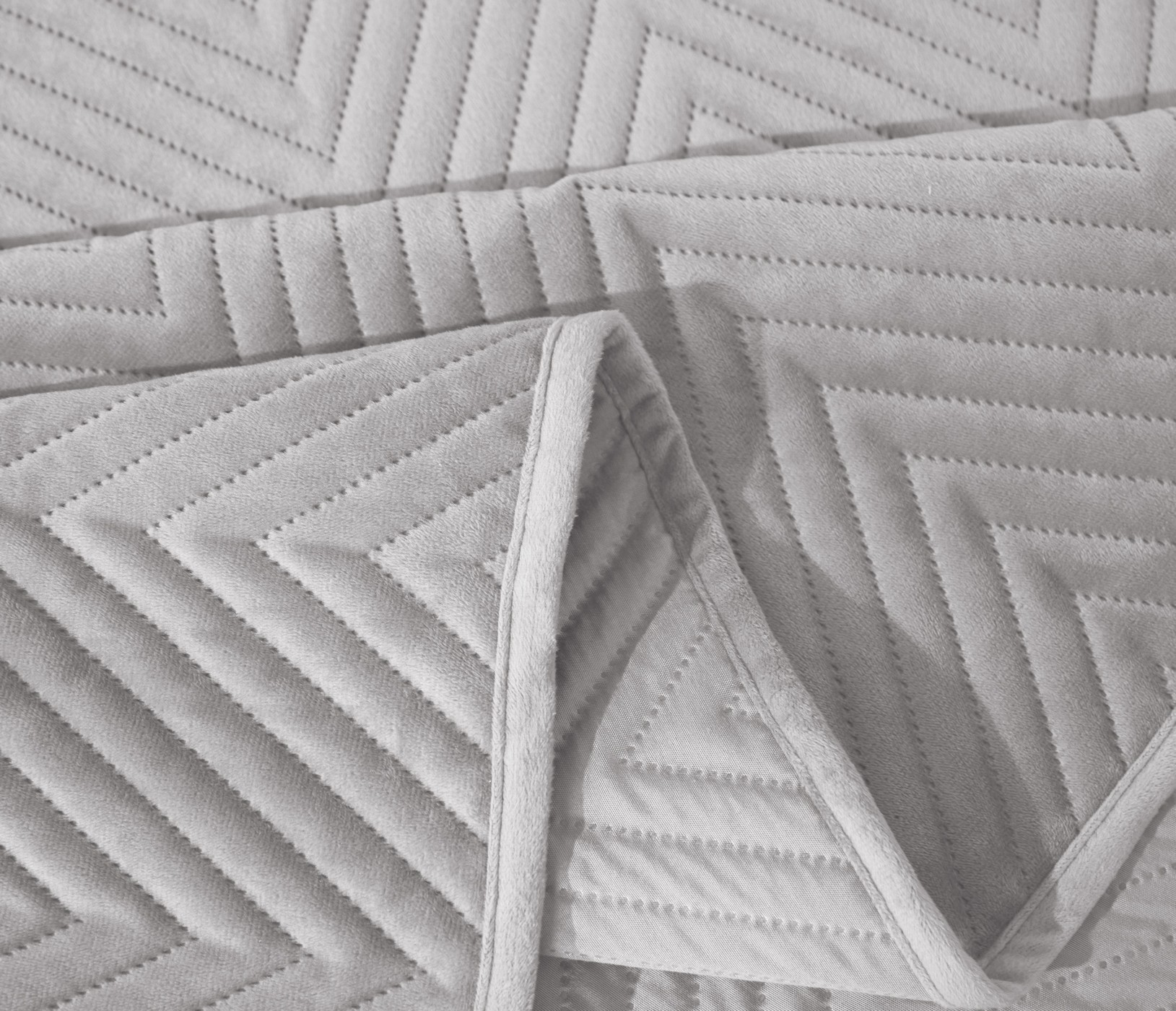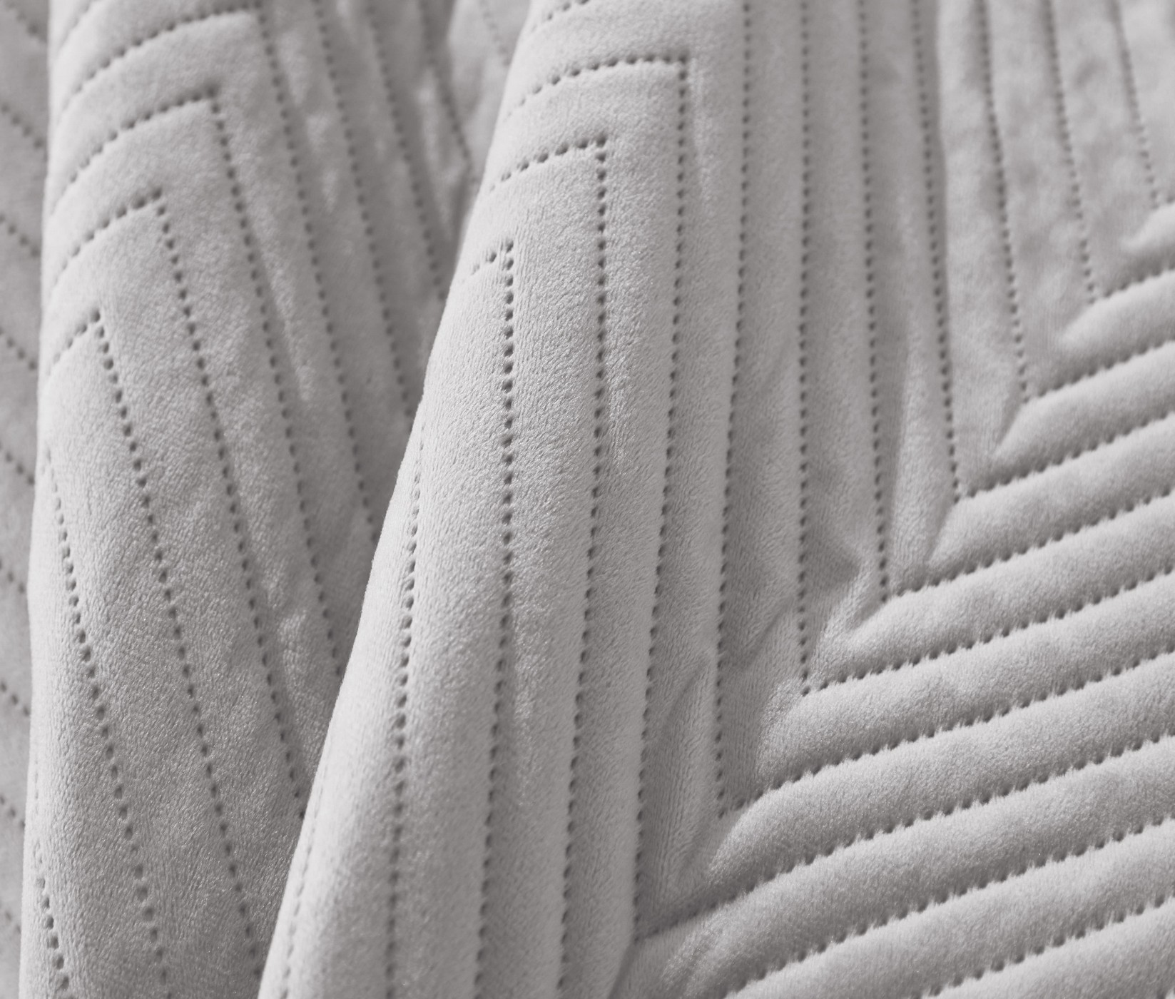 Największą ozdobą narzuty jest geometryczne pikowanie w elegancki wzór jodełki. Regularna struktura nadaje jej dopracowany, nowoczesny charakter, a estetyczna lamówka podkreśla staranne wykończenie. Jasnoszara narzuta 170x210 pięknie komponuje się z bielą, beżem, czernią, drewnem oraz dodatkami w kolorze srebra lub złota. Pasuje do wnętrz minimalistycznych, skandynawskich, nowoczesnych, klasycznych i hotelowych.