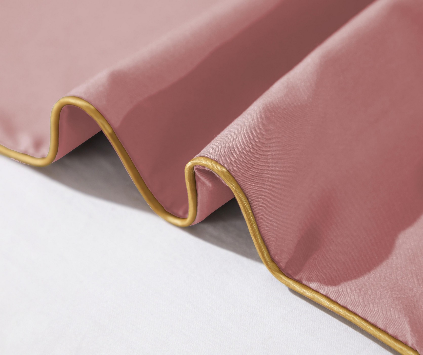 Ta pościel to doskonała propozycja dla osób, które cenią miękkość, wygodę i subtelne detale. Kolor brudnego różu w połączeniu ze złotym wykończeniem pięknie podkreśli charakter każdej sypialni.