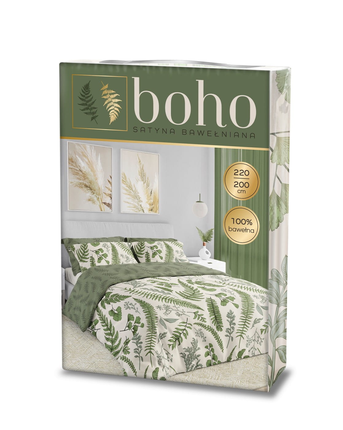 Pościel satynowa bawełna 200x220 Leśna Zieleń BOHO 008