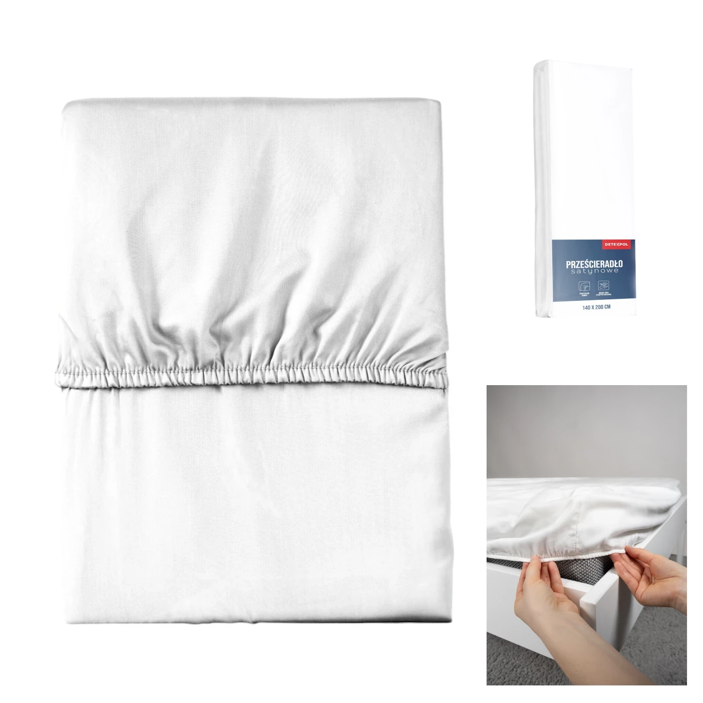 Prześcieradło z gumką 200x220 mikrofibra satynowa białe